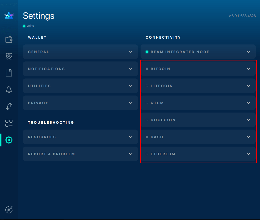 To connect Litecoin with your Beam wallet via full node, follow the steps below: