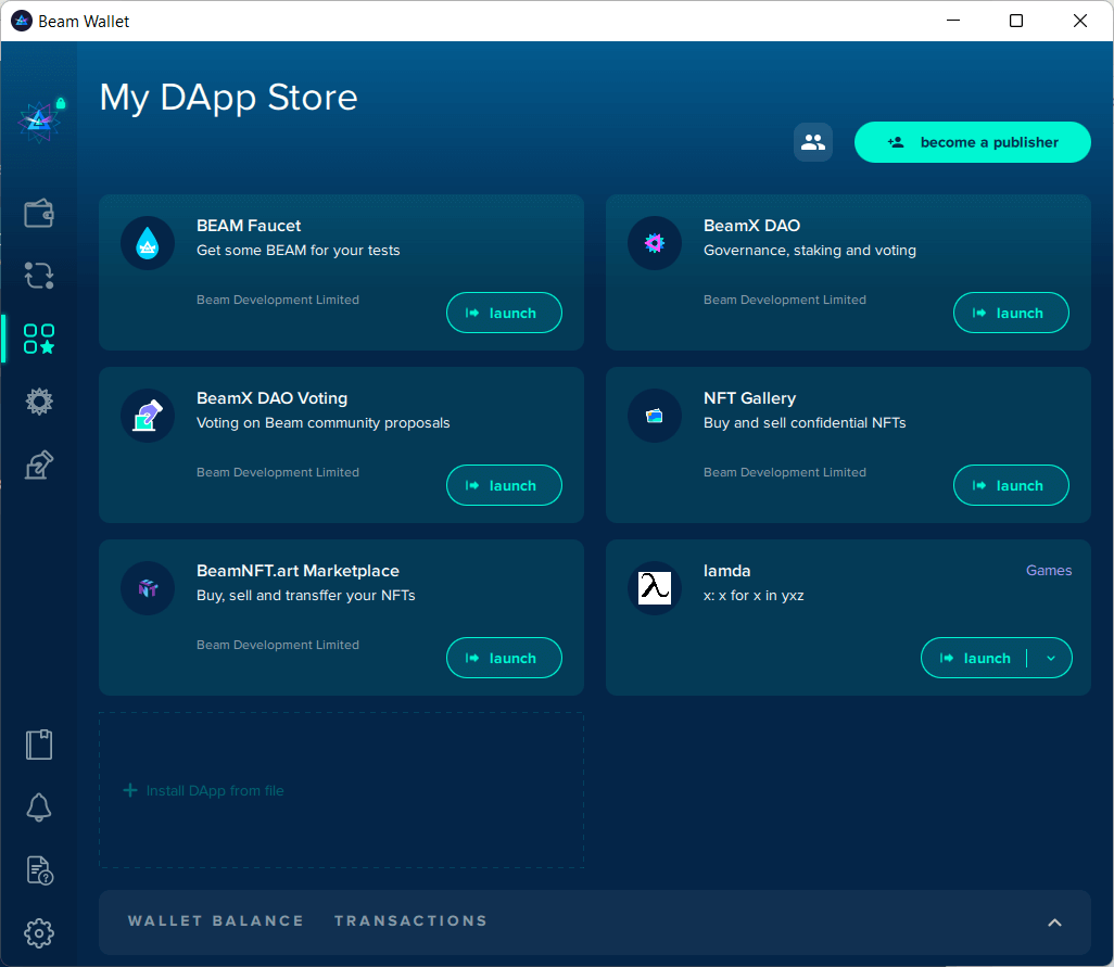 Beam's DApp store is open-source and entirely built on the Beam blockchain. Users can become developers and contribute decentralized applications to the DApp Store.