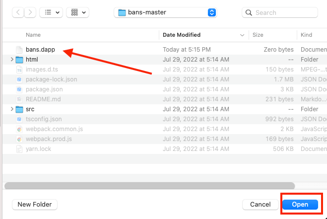 4. Upload your .dapp file from your desktop (note: all files must be in .dapp format).