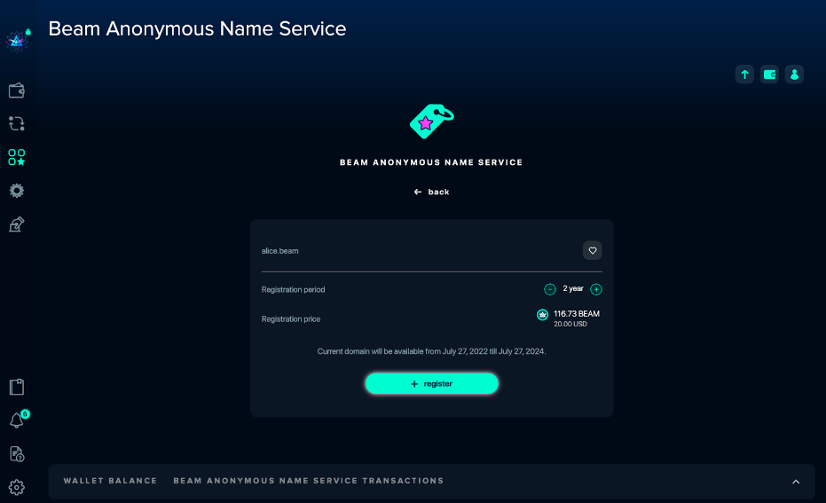 BANS domains link to Beam wallets and bypass the traditional way of sending and receiving cryptocurrency (via a long alpha-numeric string of characters) by allowing users to send (and receive) assets to a simple domain name built on the Beam blockchain.