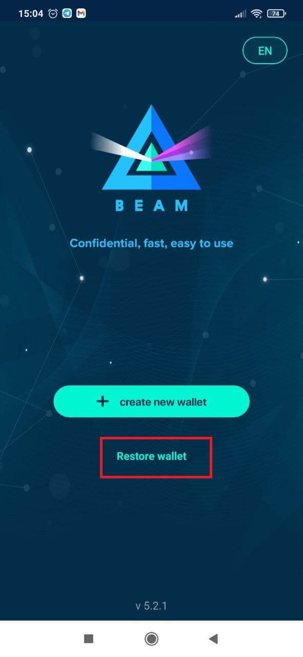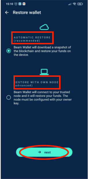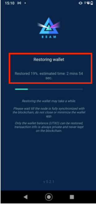 • Automatic Restore: Beam Wallet will download a snapshot of the blockchain and restore your funds on the device (recommended).