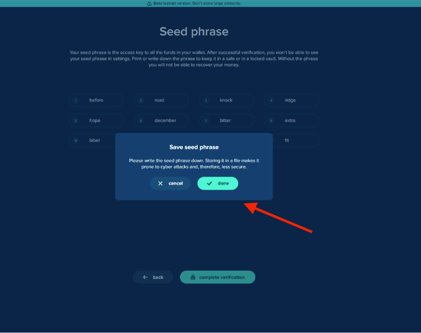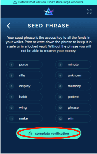 Verify your seed phrase.