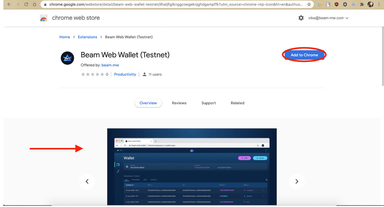 Download the Beam web wallet from Chrome Web Store or download the packed extension directly on our Github page.
